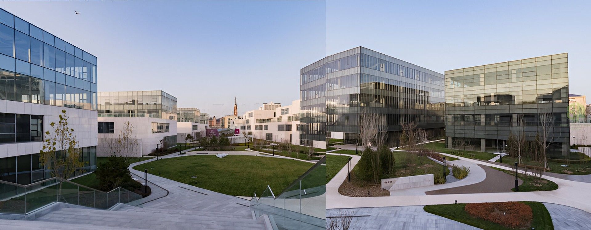 商务园的设计依托温榆河,与CBD、金融街、亦庄、总部基地形成功能互补,构建国际化、低密度、节能环保花园式高端商务办公区。