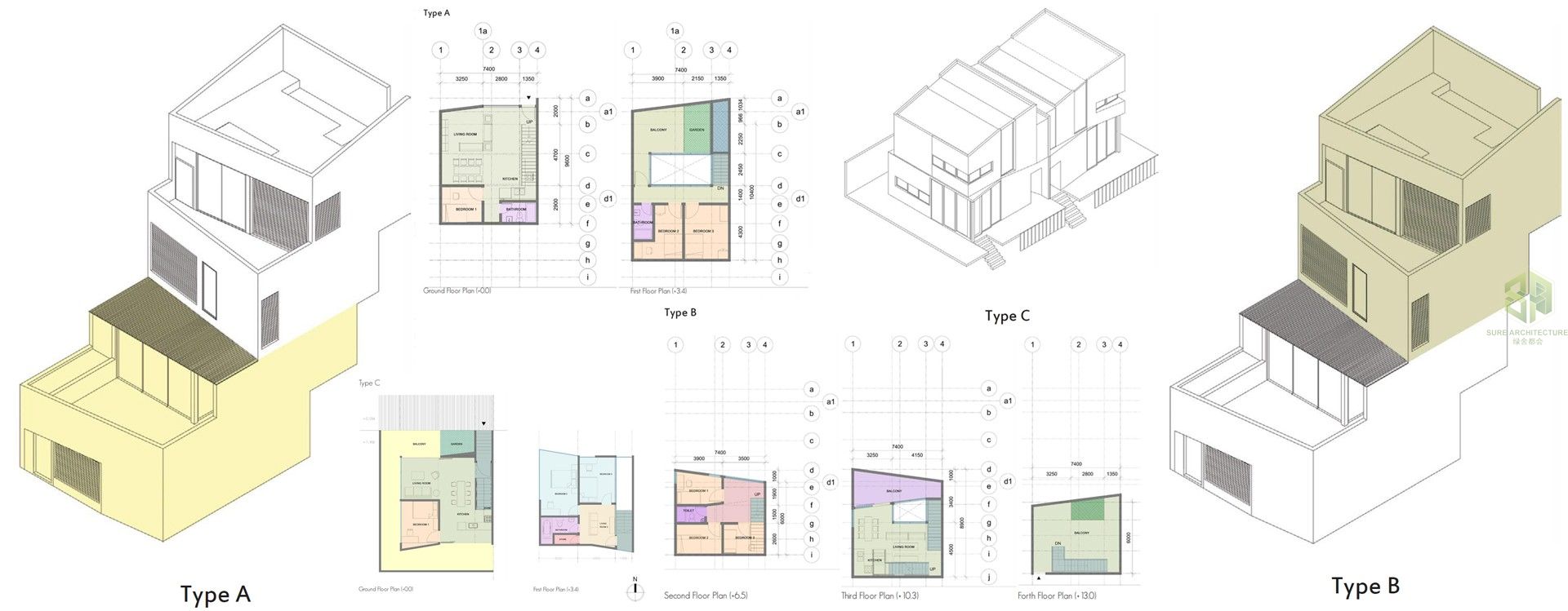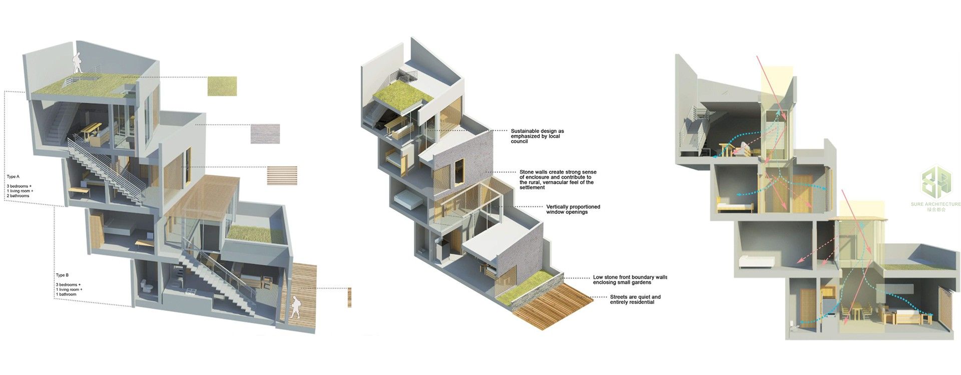 项目规划提供一系列以家庭为导向的住宅单元,主要包括三居室联排住宅与三居室半独立住宅,响应住房市场评估中提出的地方住房需求,特别是对更大户型住宅日益增长的需求以及人口老龄化的趋势。项目按照每公顷至少30套住宅的密度进行设计,包含市场型住房、社会租赁住房和中间型住房的合理组合,符合地方发展框架的要求。